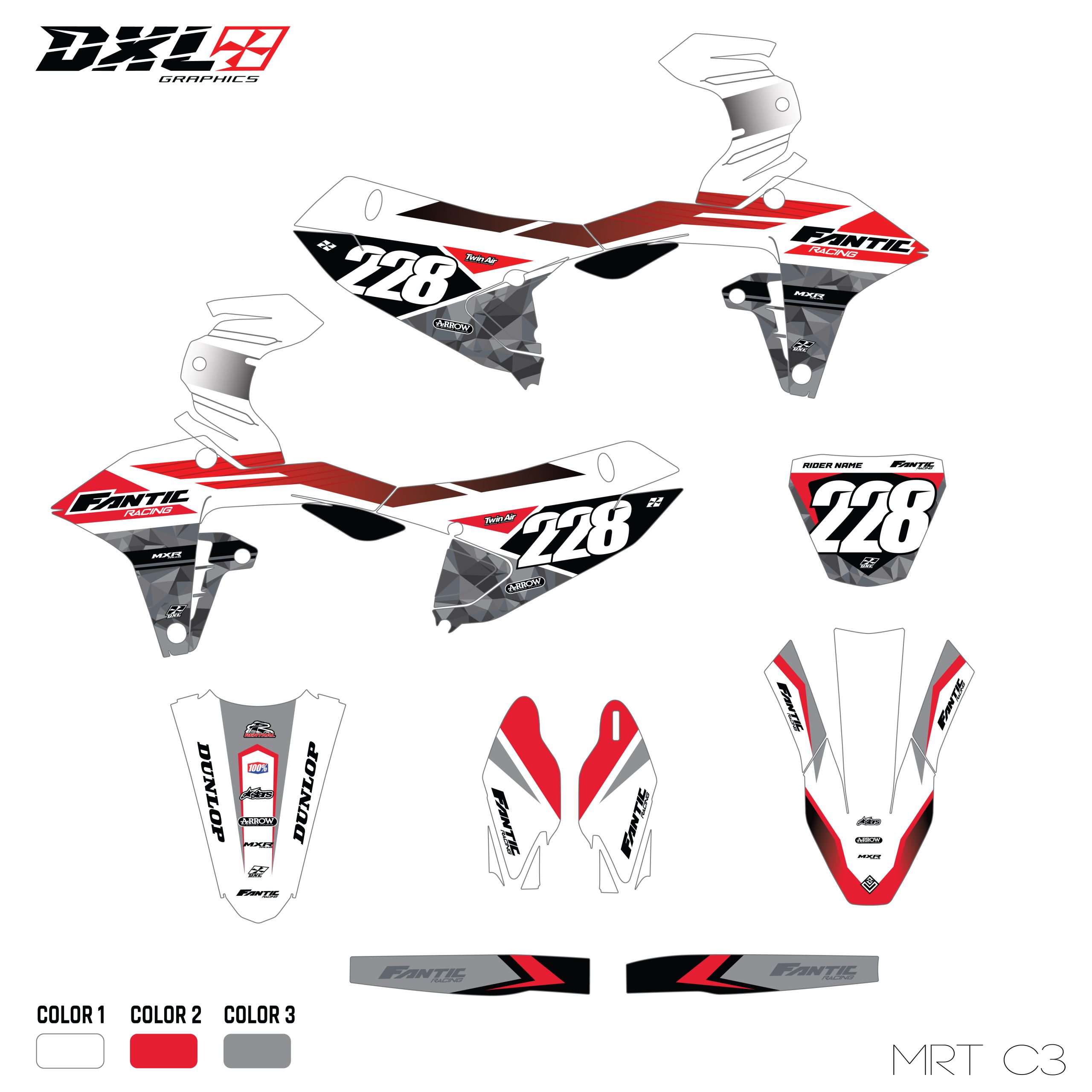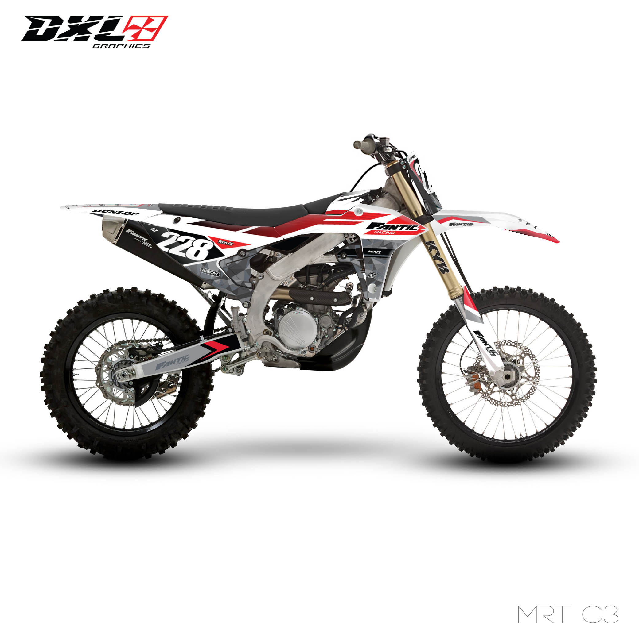 Complete graphics kit designed specifically for your motorcycle model.