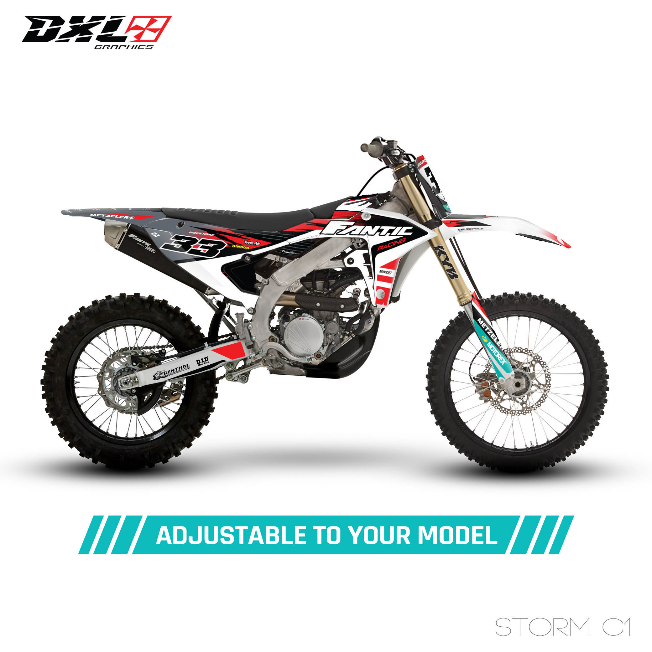 Complete graphics kit designed specifically for your motorcycle model.
