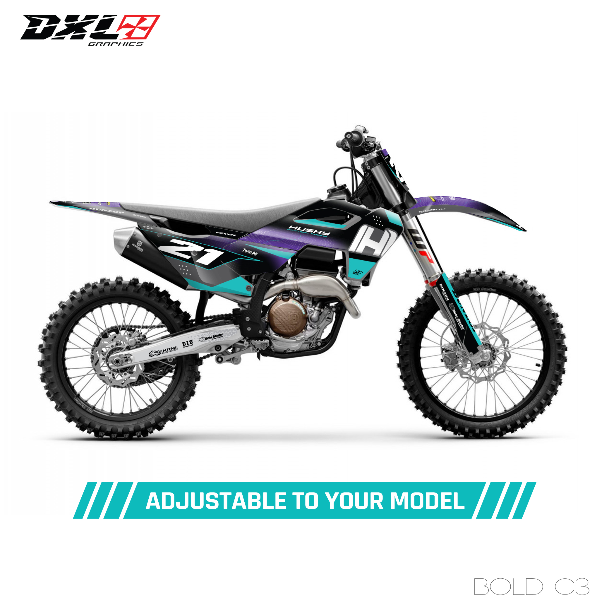 Complete graphics kit designed specifically for your motorcycle model.