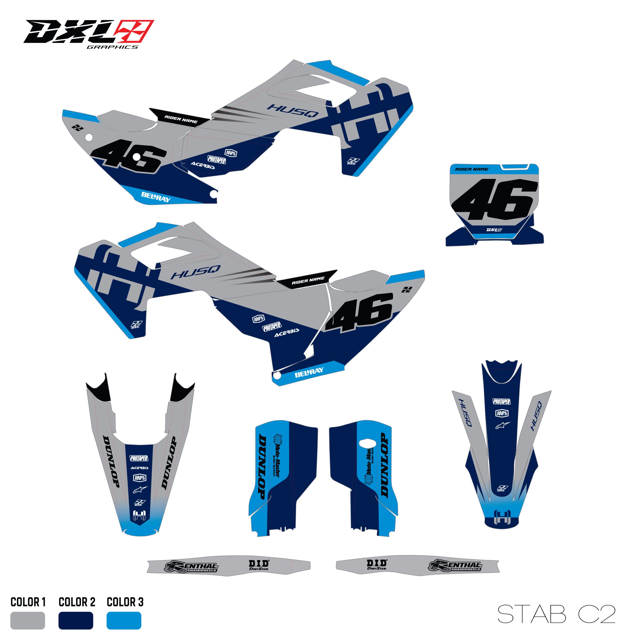 Complete graphics kit designed specifically for your motorcycle model.