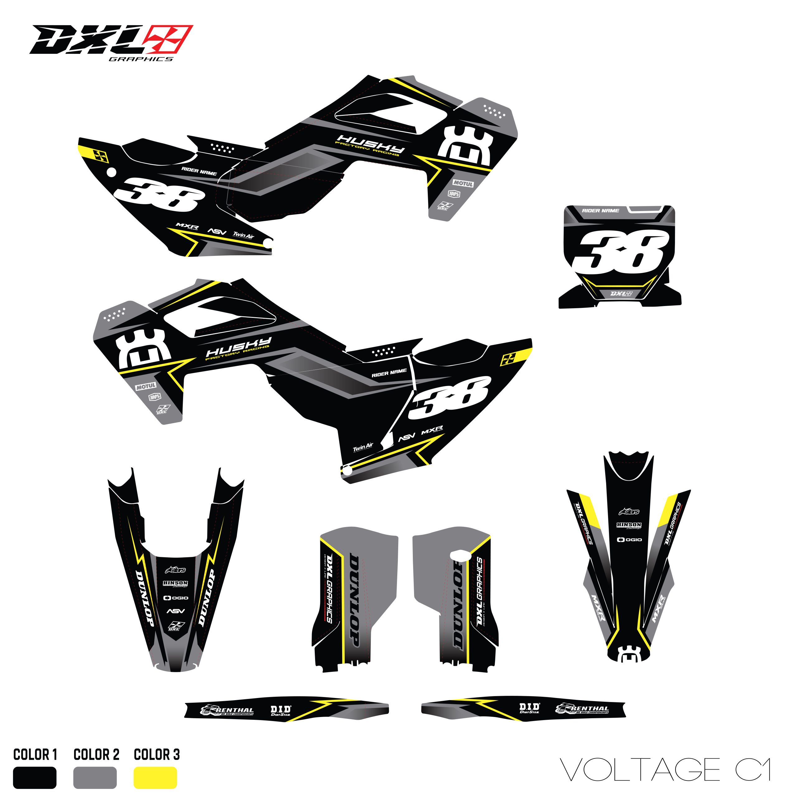 Complete graphics kit designed specifically for your motorcycle model.