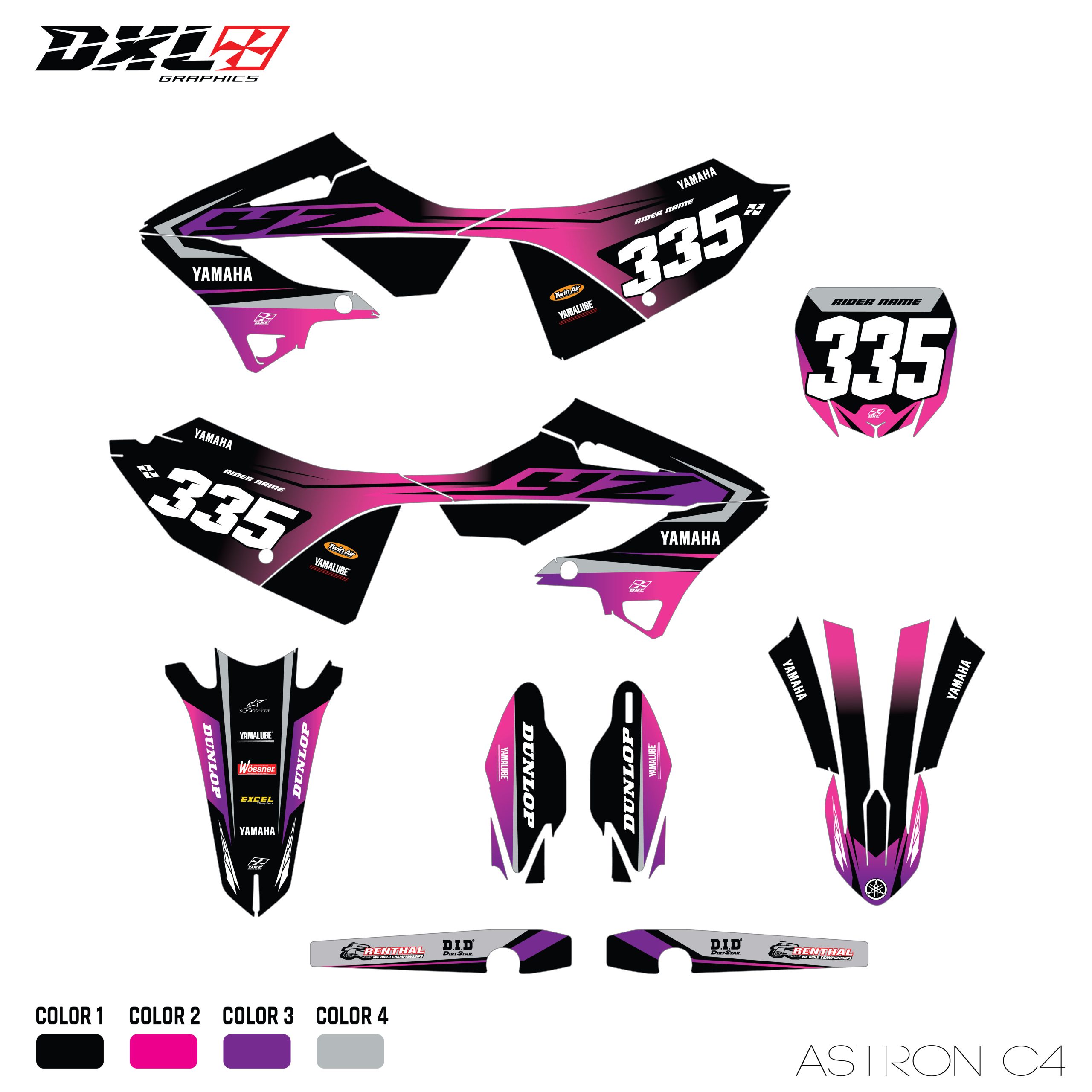 Complete graphics kit designed specifically for your motorcycle model.