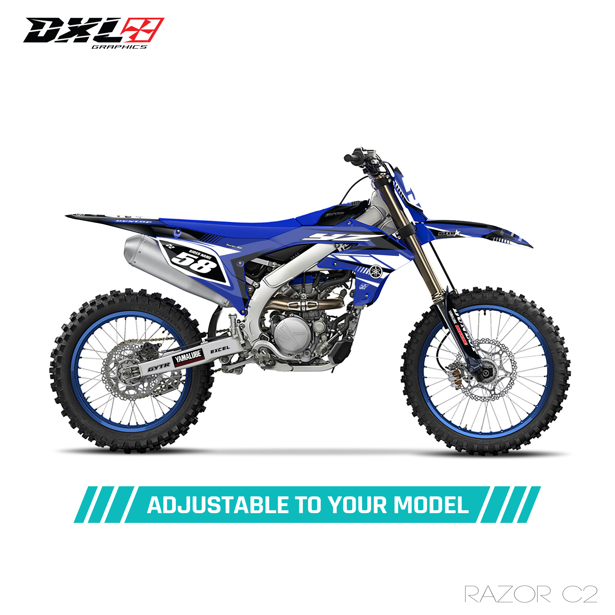 Complete graphics kit designed specifically for your motorcycle model.
